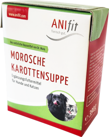 Die Morosche Karottensuppe ist in Wikipedia sehr gut beschrieben. Die freie Enzyklopädie schreibt dazu: " Die Morosche Karottensuppe eignet sich somit zur vorübergehenden Fütterung als Schonkost und unterstützt die Darmflora des Hundes und der Katze. Fütterungsempfehlung Zur Nutzung der Darmfunktion die Suppe ca. eine halbe Stunde vor einer anderen Mahlzeit servieren. Leicht erwärmt ist die Suppe bekömmlicher, sie kann aber auch bei Raumtemperatur serviert werden. Nach dem Öffnen innerhalb von zwei Tagen aufbrauchen und gekühlt lagern. Tipp: Auch bei Giardienbefall kann die Morosche Kartottensuppe helfen. Die Suppe immer eine halbe Stunde vor jeder Mahlzeit füttern und auf Flocken (Kohlenhydrate) bei den Mahlzeiten verzichten. Nach zwei Wochen besteht eine hohe Chance, dass die Giardien weg sind. |