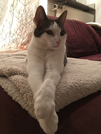 Nach acht Wochen hatte er 700g abgenommen und hält das Gewicht bis heute. Unser vorher „nicht dicker Kater“ ist heute „sportlich“ zu nennen. Ich glaube es geht ihm einfach rundum gut! Für die Lachshappen macht er quasi alles – das ist unser „Clickerwerkzeug“ Nr. 1.
